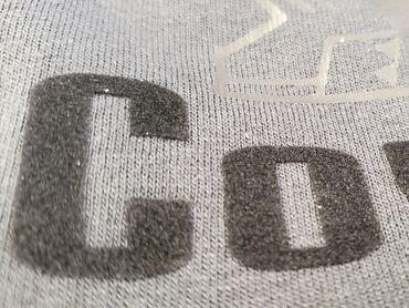 single or multi coloured vinyl that is heat applied to fabric. Shortest lifespan can easily fade in the wash or sunlight and peel off through washing or pulling.